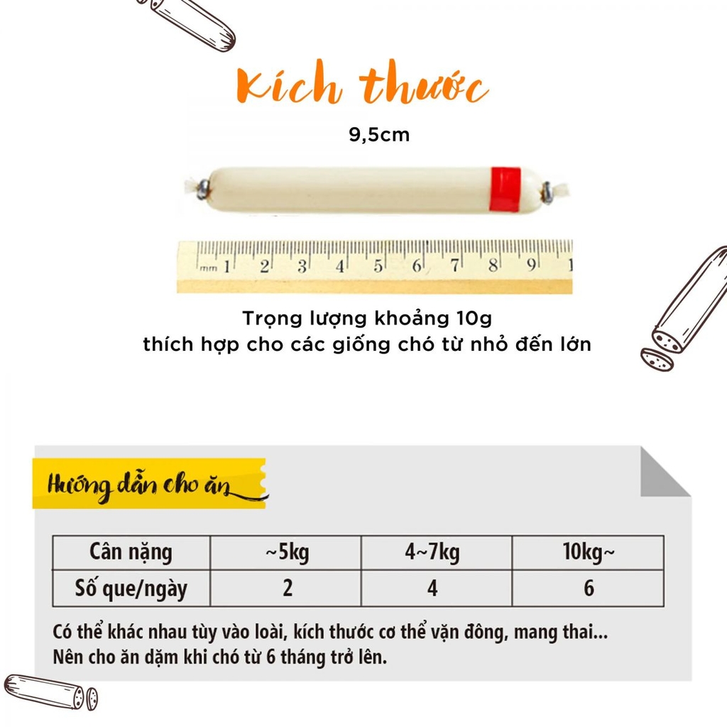 - Xúc xích mềm mịn, phù hợp cho chó ở mọi lứa tuổi